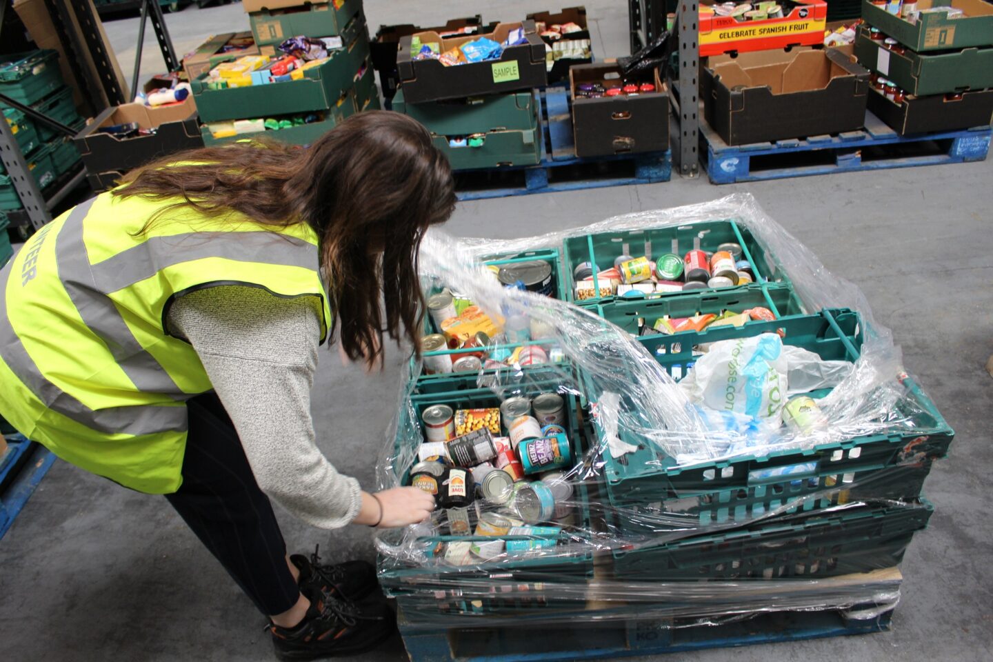 Me and the other Paper Round volunteers spent the afternoon unpacking food crates and dividing it into categories. The warehouse felt like the hub of FareShare, where an atmosphere of lively activity pervaded. Stacks and stacks of donated food filled the aisles. Boxes, crates and wooden pallets were all piled high awaiting organisation and distribution. The priority was for items with a shorter shelf life to be processed quickly, ensuring they’d be used up in time and nothing would be wasted! Once reorganised, the food is packed up into appropriate portions and sent out to the charities FareShare supports.