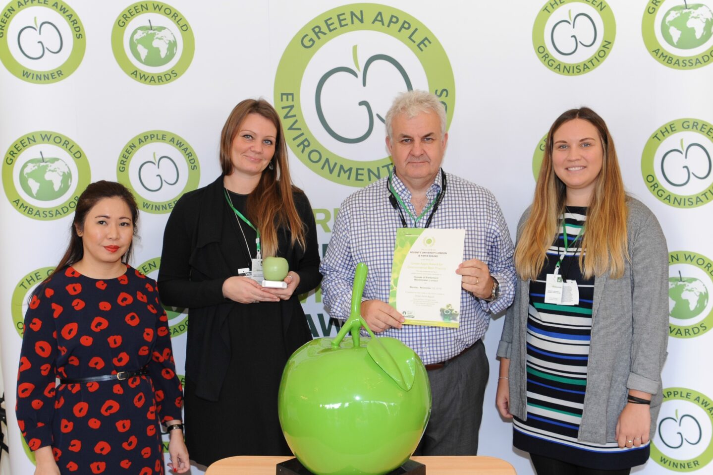 Engaging students is not always an easy task, but Regent’s University took to the challenge and were awarded a Bronze Green Apple award. Their impressive recycling rates and range of engagement activities such as roadshows, site visits and new campaigns such as ‘bin the bin’ really impressed the judges. They also carried out a range of sustainable procurement activities, such as changing their coffee cups, and replacing hand towels with dryers.