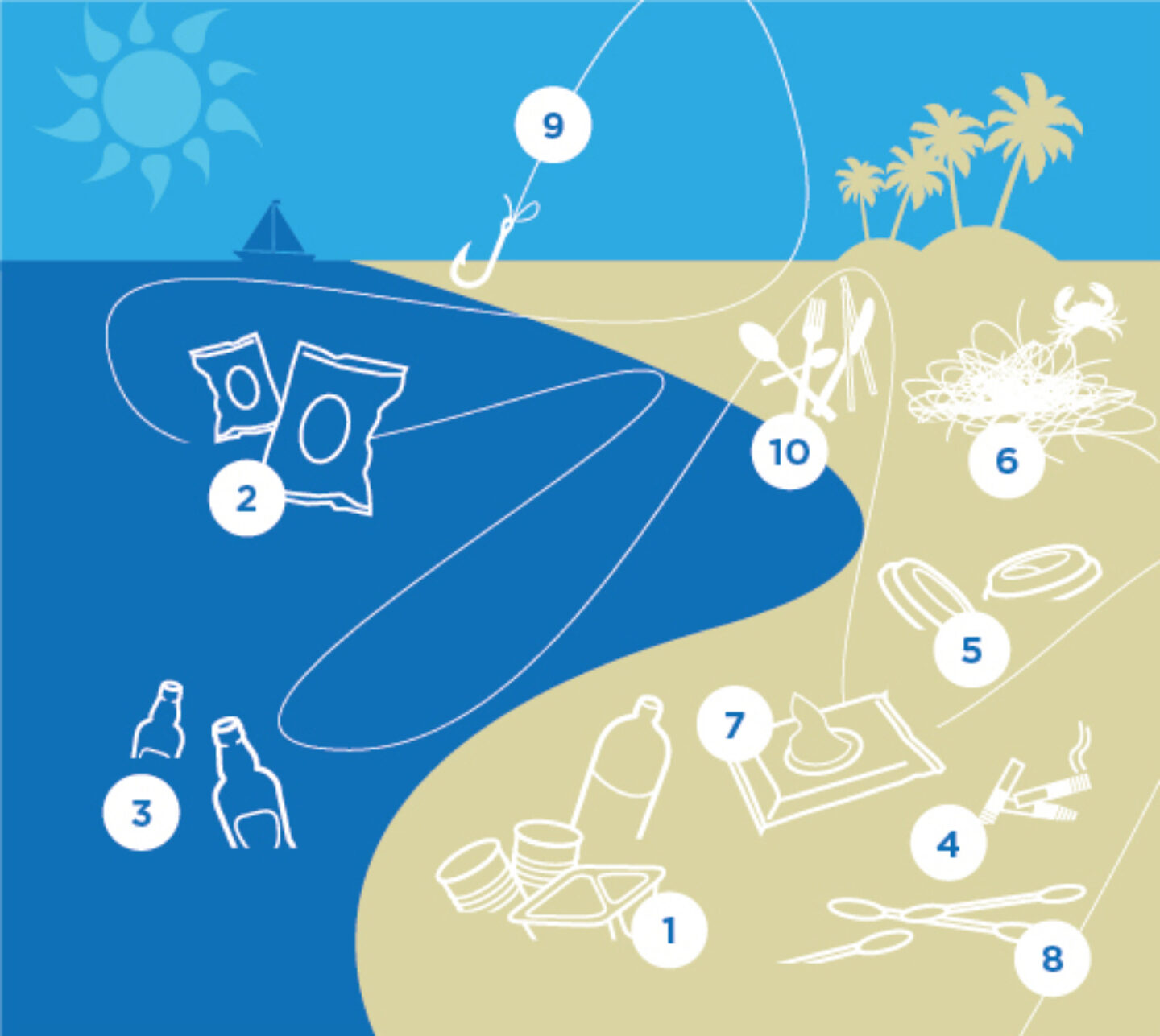The top 10 items found during the Great British Beach Clean 2017 carried out by our new charity partner the Marine Conservation Society: