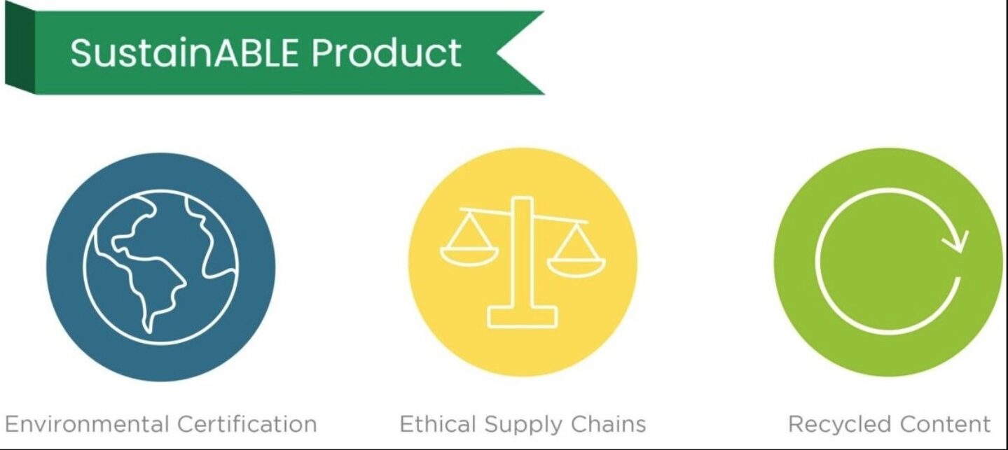 We offer a range of circular economy products, one of our most popular being recycled paper. We collect and send your paper to a mill in the Champagne region of northern France. The recycled paper is then sold back to our customers, completing the circle. Buy yours here! Our recycled paper has saved, over the last five years; 92.376l of water, safeguarded 53 trees and has avoided 2,274kg of CO₂ emissions being produced. Encourage you to choose sustainable optionsEarlier this year, we launched our SustainABLE Procurement Programme. Our website now highlights our more sustainable product options which help anyone who is looking for office supplies, to discover eco products more easily. We have curated, from our 20,000-item catalogue, a list of 3,000 products which contain either recycled content above 50%, environmental certification from 3rd party organisations such as the Rainforest Alliance, or have a certified ethical supply chain where the company is a member of an Ethical Trading initiative, through membership of SMETA, or is registered Fairtrade. These products are signposted with the below icons, which makes it super simple for you to make sustainable, well-informed decisions about the products you buy.