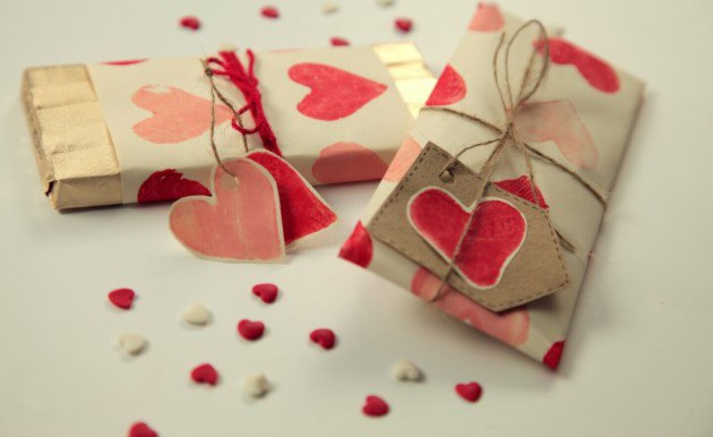 1. Why not use recycled newspapers and personalise your wrapping creating tags from leftover ribbon, photos or beads from around the house. You could use newspapers dated February 14th for a special Valentine’s finish.