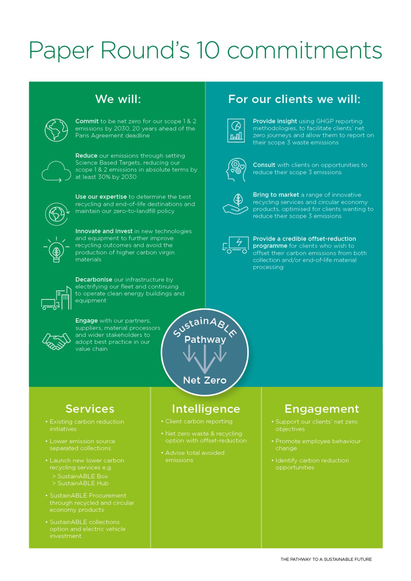 We’ll achieve a low carbon, net zero future through 10 key commitments which will cataylse change and we’ll bring to life via our award-wining services, intelligence and engagement.